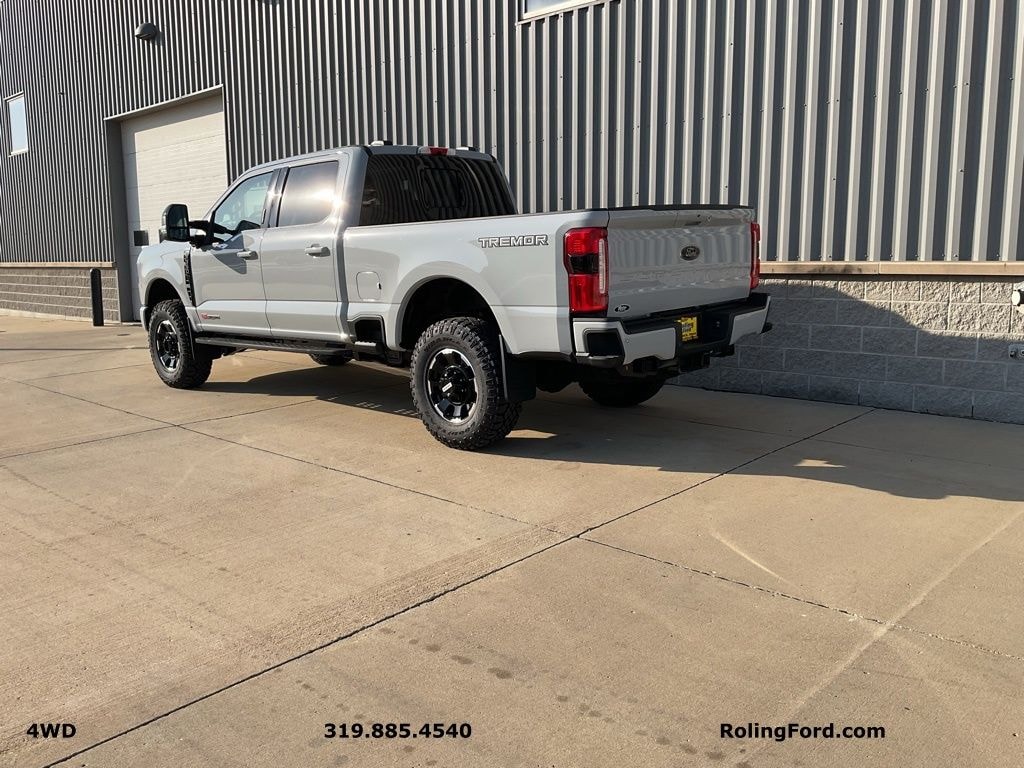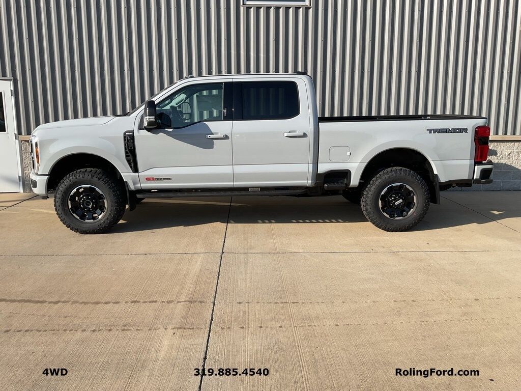 Order Code 618A, GVWR: 12,000 lb Payload Package, 5th Wheel/Gooseneck Hitch Prep Package, Black Appearance Package, Ford Connectivity Package (1-Year Included), Internet access capable: 5G Modem - Ford Connectivity Package, Lariat Premium Package, Lariat Ultimate Package, Tremor Off-Road Package, 4-Way Adjustable Headrests, 410 Amp Dual Alternators, 6" Ebony Black Angular Running Boards, 8 Speakers, A/C w/ Dual Climate Control, Adaptive Cruise Control w/Stop-and-Go, Adjustable pedals, All-Weather Floor Mats w/o Carpet Mats, AM/FM radio: SiriusXM with 360L, Auto High-beam Headlights, Auto-dimming Rear-View mirror, Automatic temperature control, Black Painted Front Grille Surround, BLIS w/Cross-Traffic Alert, Body Color Front & Rear Bumpers, Ebony Black Painted Mirror Caps, Electronic Stability Control, Electronic-Locking w/3.55 Axle Ratio, Engine Block Heater, Fog Lamps - LED, Front & Rear Parking Sensors, Fully automatic headlights, Gooseneck Hitch Kit (Pre-Installed), Head-Up Display, Heated Front Seats, Heated steering wheel, Lane Departure Warning System, Memory seat, Navigation system: Connected Navigation, Panic alarm, Pedal memory, Power-Deployable Running Boards, Power-Sliding Rear-Window w/Defrost, Privacy Glass, Pro Trailer Backup Assist, Pro Trailer Hitch Assist, Radio: B&O Unleashed Sound System by Bang & Olufsen, Rain sensing wipers, Rapid-Heat Supplemental Cab Heater, Rear Wheel Well Liners (Pre-Installed), Rear window defroster, Remote keyless entry, Reverse Brake assist, SecuriCode Keyless Entry Keypad (Driver's Side), Security system, SiriusXM w/360L, Steering wheel mounted audio controls, SYNC 4 w/Enhanced Voice Recognition, Tailgate Step & Handle, Textured Matte Finish Off-Road Running Boards, Tough Bed Spray-In Bedliner, Tremor Off-Road Decal, Twin Panel Power Moonroof, Ventilated front seats, Wheels: 18" Ebony Black Machined & Painted Aluminum, Wheels: 20" Ebony Black High Gloss.